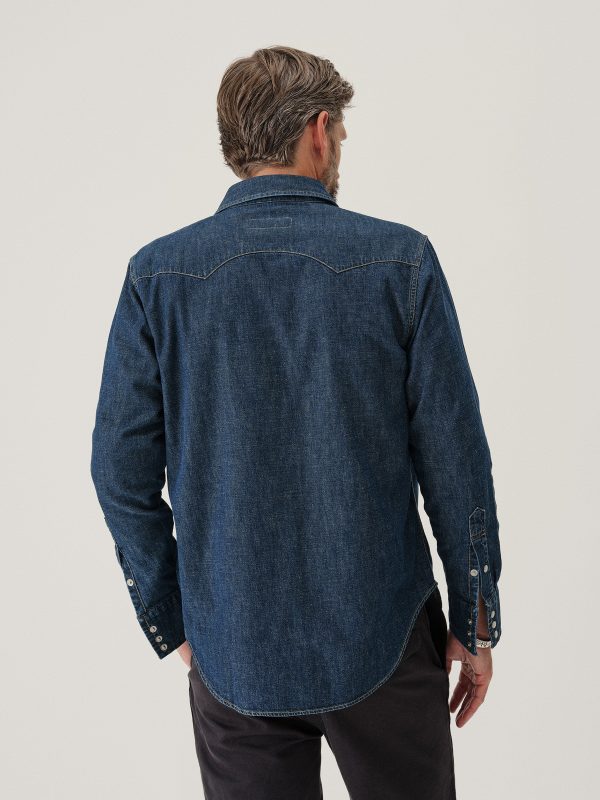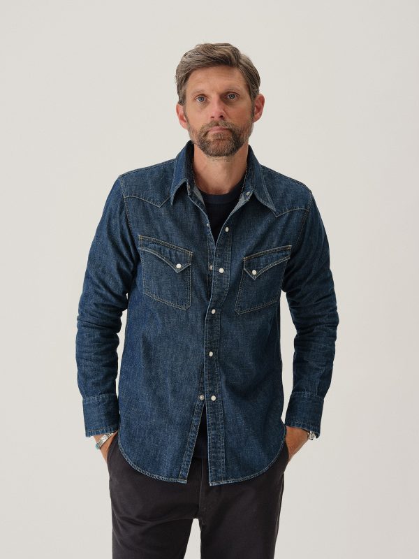 The Point Rider is designed with two slanted chest pockets and scalloped flaps, reminiscent of rarer western models from the 1940s and 1950s. Featuring front and back yokes and pearl snaps, it’s cut from a neppy denim twill and constructed with flat-felled seams for durability.