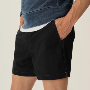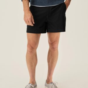 A classic-fit resort short made from sturdy nylon twill, cut with a slightly shorter inseam. Featuring a zipper fly, a button closure, waistband adjuster tabs with metal buckles, and a zippered back pocket.