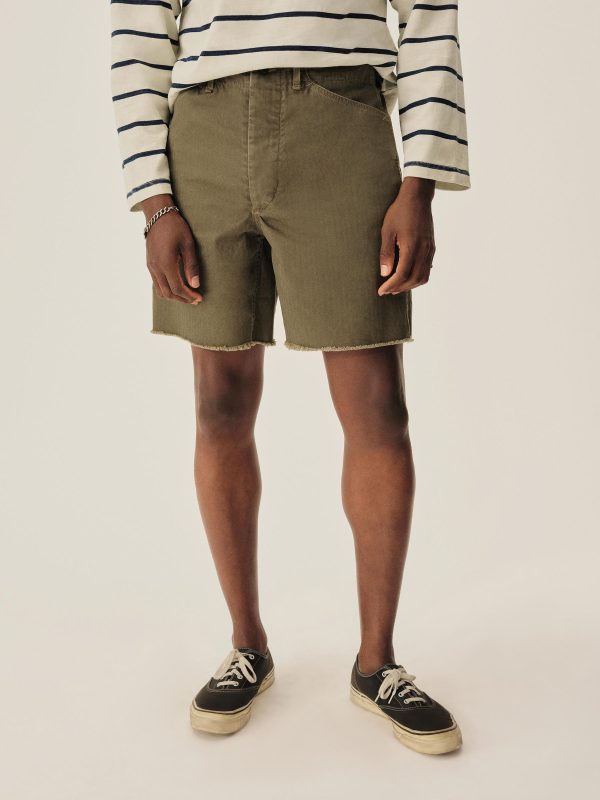 Our homage to WWII-era military-style fatigue cut-offs. Cut in a true-to-original relaxed fit with a slightly higher rise and roomy thigh, in a lightly structured 9.4 oz. herringbone twill. Constructed with felled seams, patch-and-flap back pockets, and 13-star tack buttons — all authentic to the original WWII model. Garment-washed for a lived-in feel.
