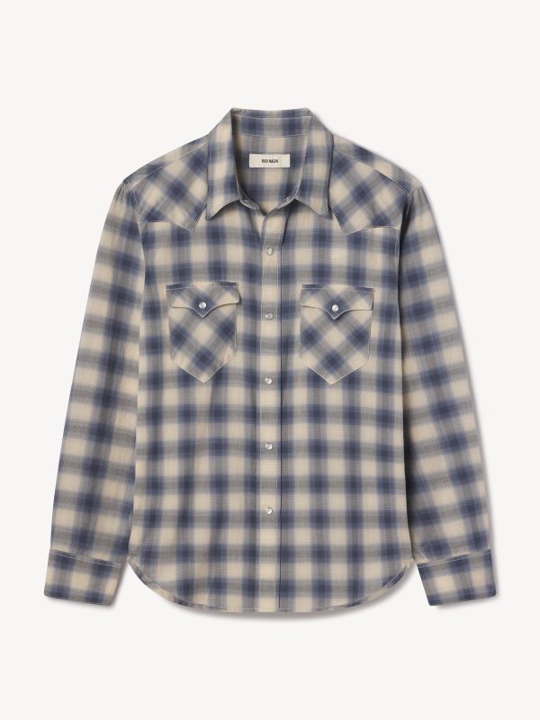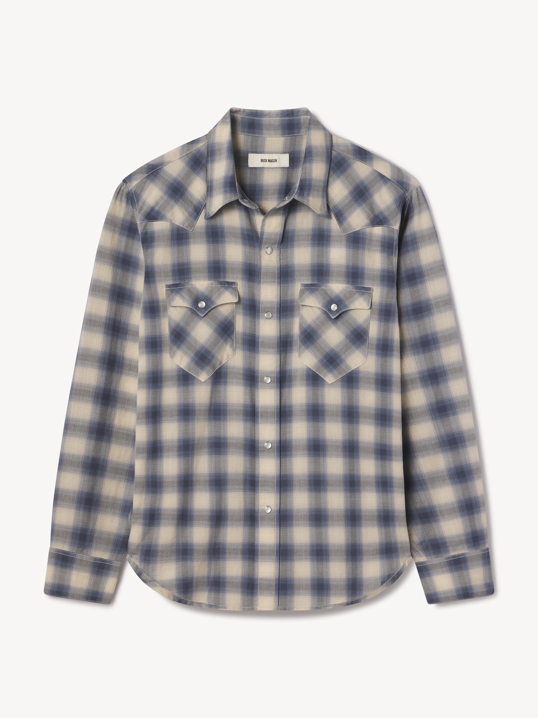 In the spirit of the ol’ Palomino, a classic fit western style shirt made from a springweight blend of cotton and wool, ideal for warm climates. The shirt has all the cowboy details like pearl snaps, a classic pointed yoke, five point pockets with pointed pocket flaps.