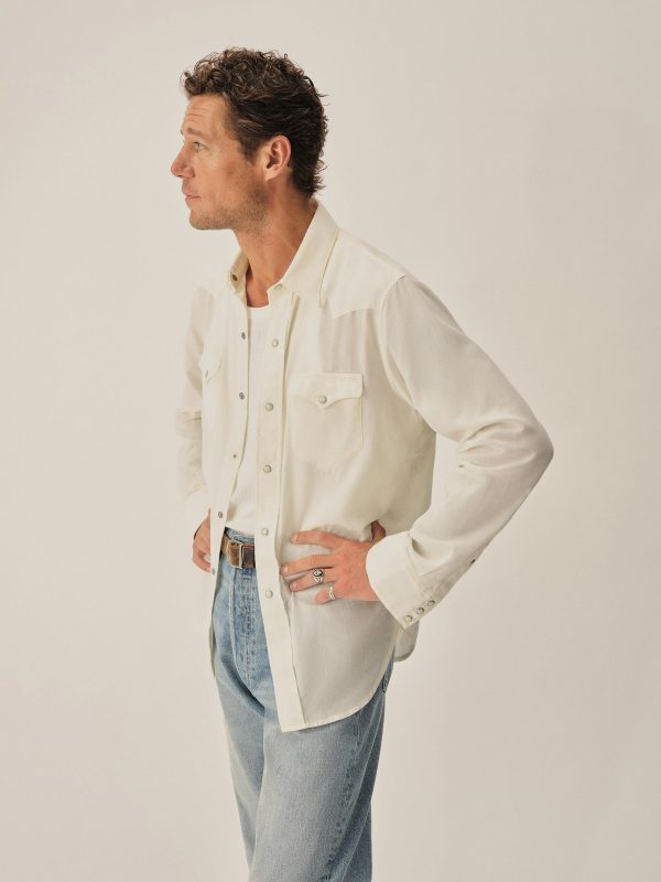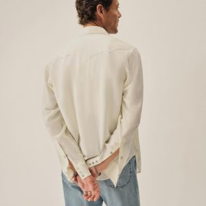 In the spirit of the ol’ Palomino, a classic fit western style shirt made from a springweight blend of cotton and wool, ideal for warm climates. The shirt has all the cowboy details like pearl snaps, a classic pointed yoke, five point pockets with pointed pocket flaps.