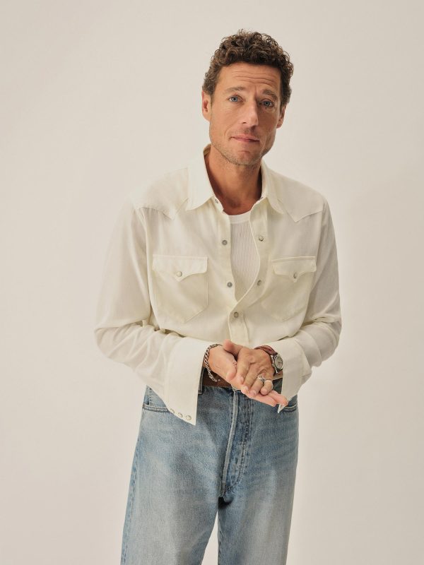 In the spirit of the ol’ Palomino, a classic fit western style shirt made from a springweight blend of cotton and wool, ideal for warm climates. The shirt has all the cowboy details like pearl snaps, a classic pointed yoke, five point pockets with pointed pocket flaps.