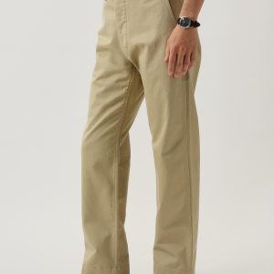 The classic officer’s pant in our Full Saddle fit: high-rise, straight through the thighs and leg. Cut from 9.5 oz cotton twill that has been washed to achieve the same look and feel of vintage service uniforms. Features a “Hollywood” one-piece waistband construction, slash front pockets, buttoned flap back pockets, and a welted coin pocket, natural canvas interior detailing, and real corozo buttons. Garment washed with enzymes for a lived-in feel. Button fly.