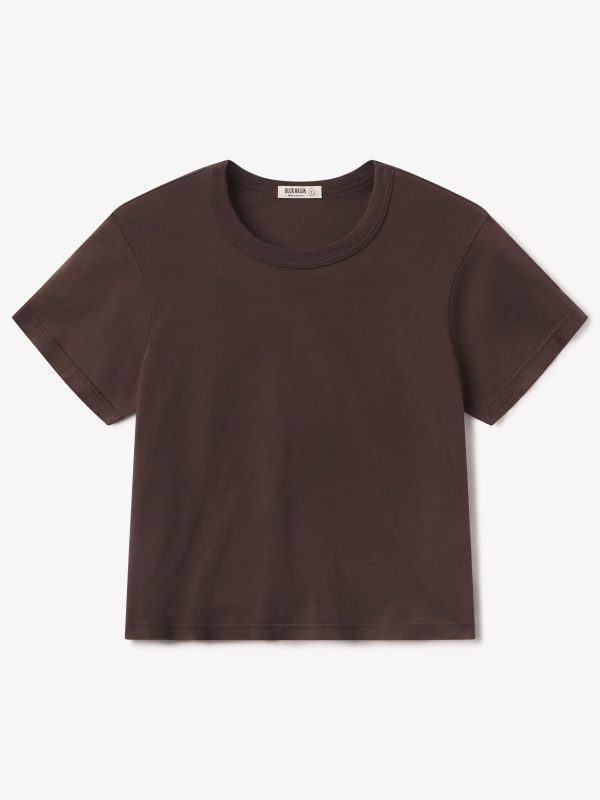 Boxy short sleeve crewneck tee with a straight hem. Cut from 120 GSM Supima cotton. Constructed with rib neck binding and double-needle cover-stitching at the hem. Garment washed for a lived-in feel.