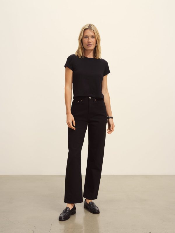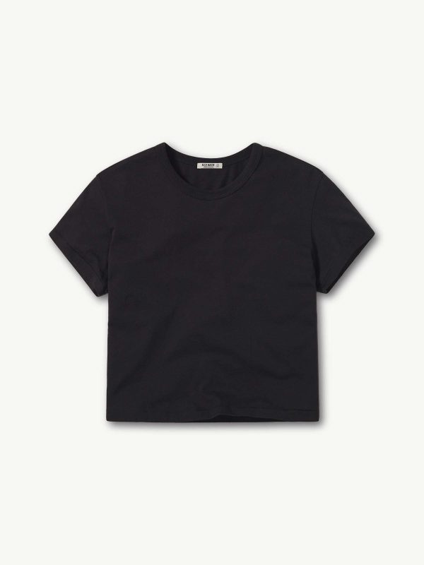 Boxy short sleeve crewneck tee with a straight hem. Cut from 120 GSM Supima cotton. Constructed with rib neck binding and double-needle cover-stitching at the hem. Garment washed for a lived-in feel.
