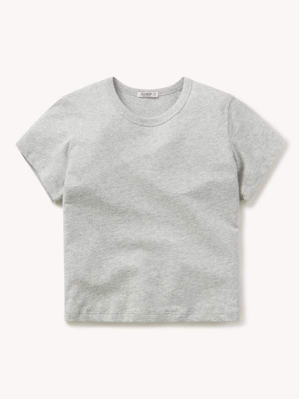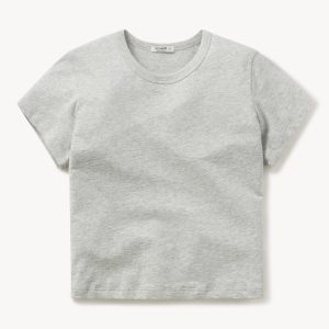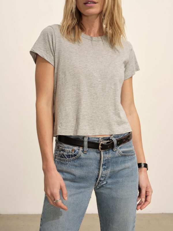 Boxy short sleeve crewneck tee with a straight hem. Cut from 120 GSM Supima cotton. Constructed with rib neck binding and double-needle cover-stitching at the hem. Garment washed for a lived-in feel.