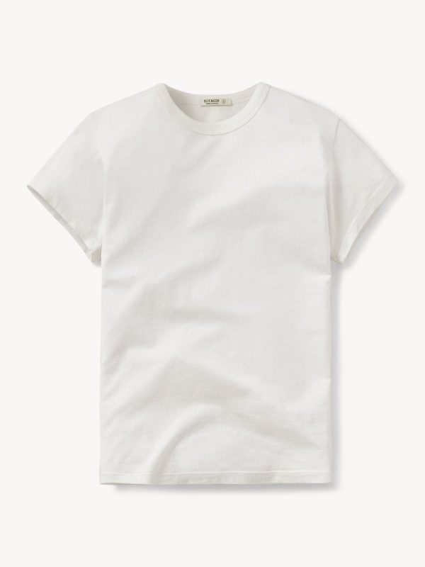 Slim fit short sleeve crewneck tee with a straight hem in 120 GSM jersey, knit from long-staple Supima cotton. Constructed with a durable rib stitch collar and double-needle cover stitch hem. Garment washed with softener for a lived-in feel.