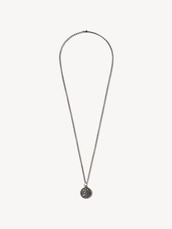 A nod to the road-worn keepsakes of mid-century wanderers, this necklace features a hand-stamped sterling charm suspended on a classic ball chain. Made in Texas. Finished with a Red Rabbit x Buck Mason co-branded stamp.