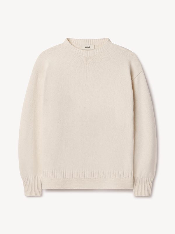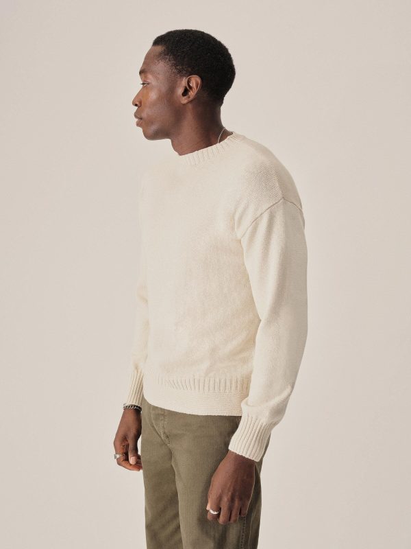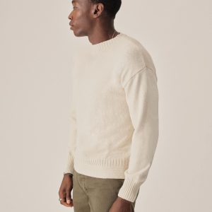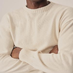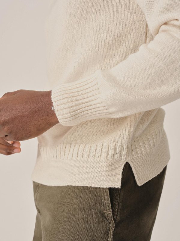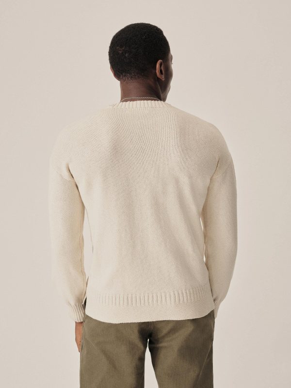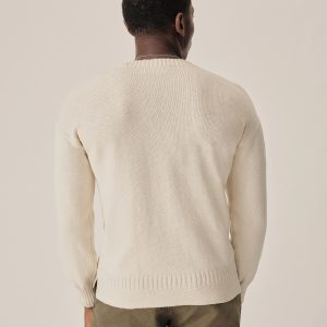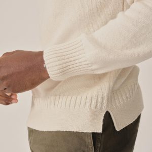 In the spirit of traditional fishermen knits, our Seafarer Guernsey is constructed with a boxy, jersey knit cotton body that features a shallow sleeve cap, side venting at the hem, and 2×2 ribbing at sleeves and cuffs.