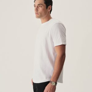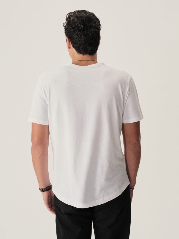 Classic fit short sleeve crewneck tee with our signature curved hem, cut from USA grown 145 GSM cotton with a light slub texture and sewn at BM Knitting Mills in Mohnton, PA. Constructed with self-neck binding and a flat stitch finish for comfort. Garment washed with enzymes and softener for a lived-in feel.