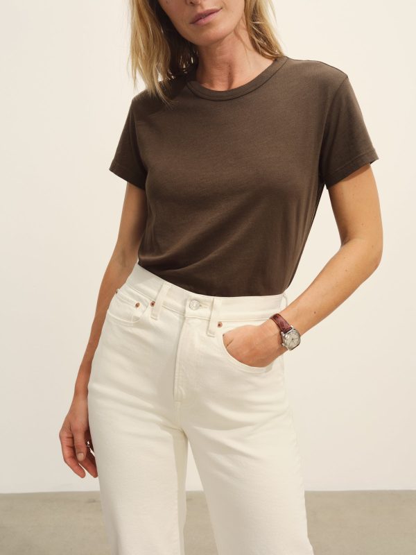 Classic fit short sleeve crewneck tee with a straight hem, cut from 125 GSM cotton with light slub texture. Constructed with self neck binding and ladder stitch detailing at the hems. Garment dyed and washed with softener for a lived in feel.