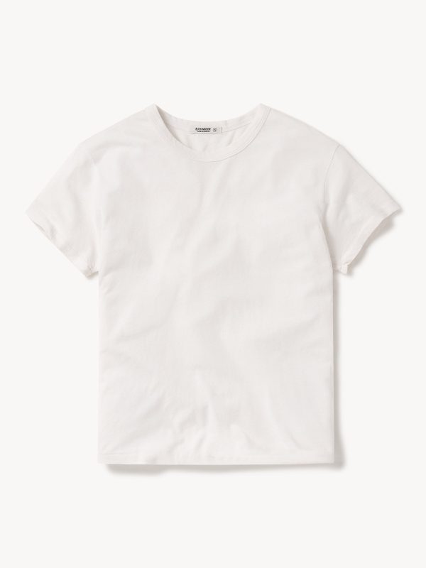 Classic fit short sleeve crewneck tee with a straight hem, cut from 125 GSM cotton with light slub texture. Constructed with self neck binding and ladder stitch detailing at the hems. Garment dyed and washed with softener for a lived in feel.