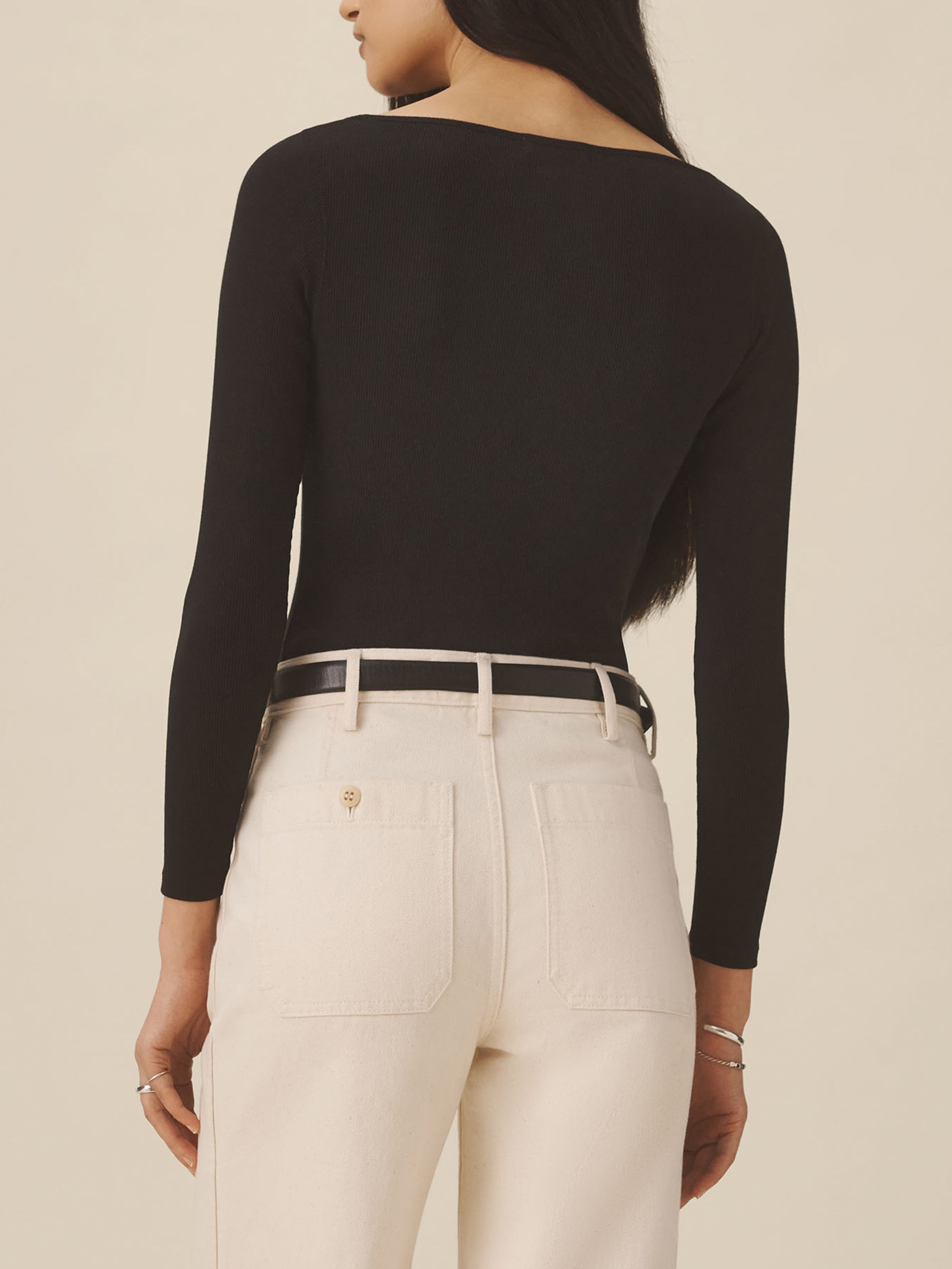 Inspired by vintage French bateau tops from the 1950s and ’60s, this style is cut from a military-inspired stretch rib for a clean, structured fit. Designed with a wide open neckline, bracelet-length sleeves, and 1×1 rib trim at the collar, it’s slim and fitted through the body.