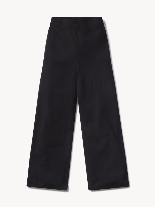 Straight leg, high-waisted 2×2 rib knit pant cut from 295 GSM stretch cotton that holds it shape. Fits comfortably at the waist with a wide elastic waistband with a full length inseam measuring 31 3/4”. Garment washed for a lived-in feel.