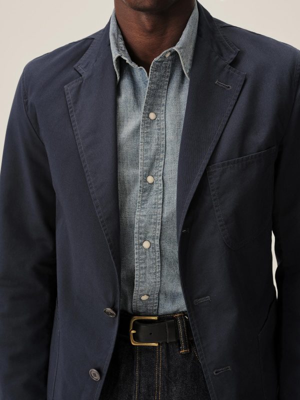 Tailored 3-roll-2 button blazer inspired by timeless, vintage suiting. This iteration is made from a breathable, summerweight cotton and Tencel blend with a smooth, lightweight hand feel. Details include three patch pockets, two internal welt pockets, and a notched lapel. We left it unlined and omitted the back vent and cuff buttons for a casual, streamlined look. Constructed with hand-linked seams.