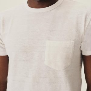 Classic fit short sleeve crewneck tee with a straight hem and patch chest pocket. Cut from a midweight cotton with tonal jacquard patterning. Garment washed for a lived-in feel.