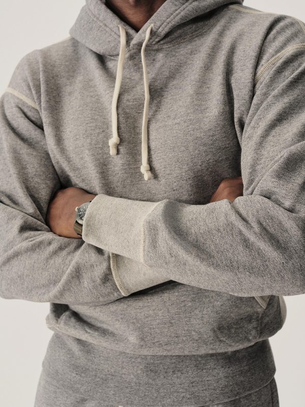 A midcentury-inspired hooded sweatshirt made from plush, not-too-heavy, not-too-light, welterweight French terry. Features a double-layer hood and kangaroo front pocket.