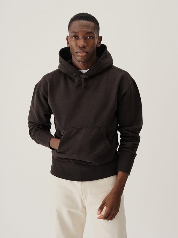 A midcentury-inspired hooded sweatshirt made from plush, not-too-heavy, not-too-light, welterweight French terry. Features a double-layer hood and kangaroo front pocket.