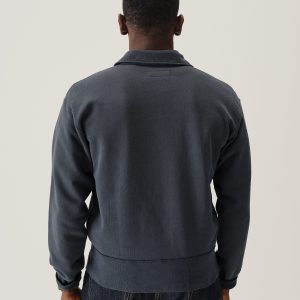 A midcentury-inspired quarter-zip collared sweatshirt made from plush, not-too-heavy, not-too-light, welterweight French terry. Features a foldover collar and front zip closure.