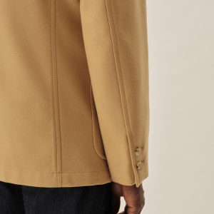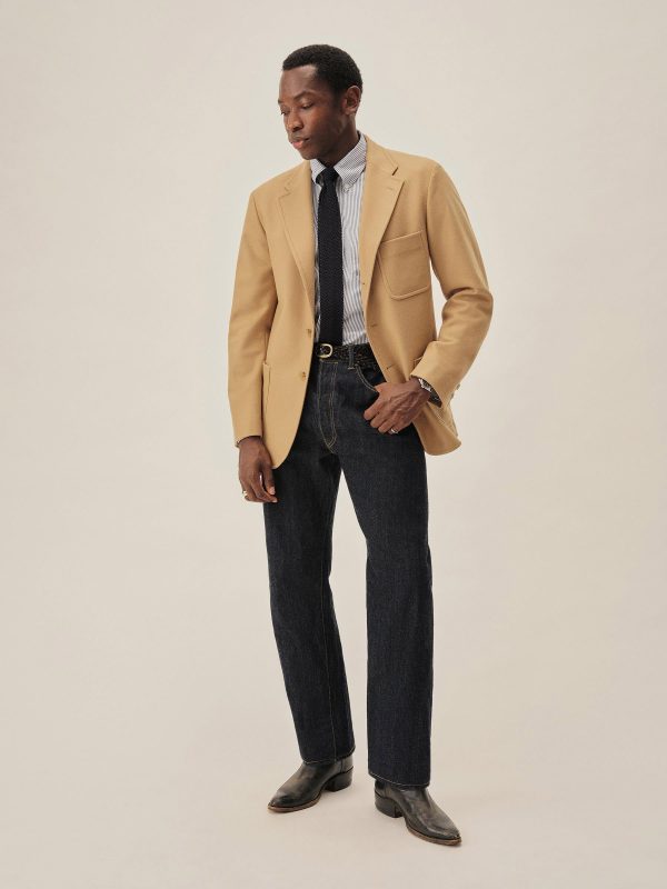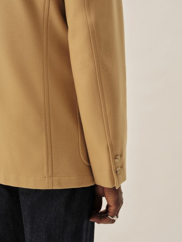 An Ivy-inspired American blazer crafted from a blend of wool and cashmere. Designed with a 3-roll-2 button stance, open patch pockets, and a functional sleeve vent with two horn buttons. Cut with a center back seam and left unlined through the body for a relaxed, unstructured feel, while the sleeves are fully lined in viscose for smooth layering.
