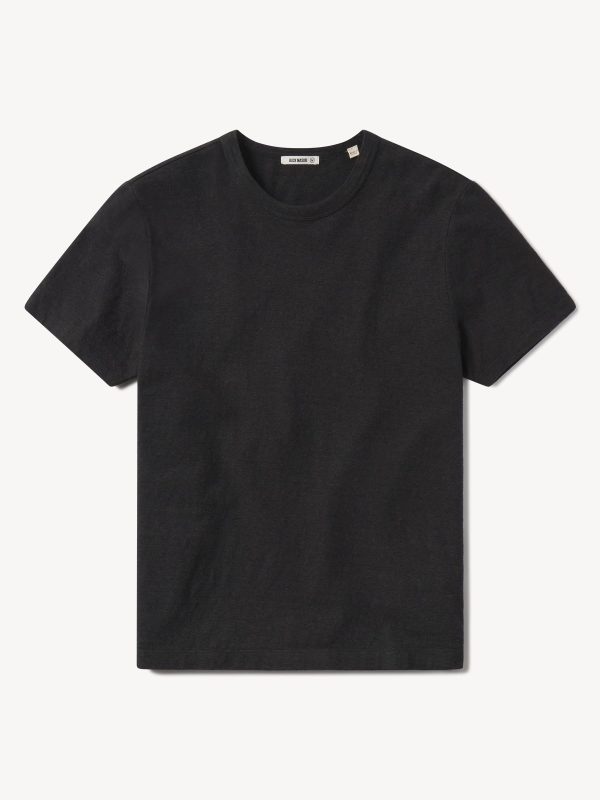 Classic fit short sleeve crewneck tee with a straight hem. Cut from a 190 GSM yarn-dyed hemp/cotton blend that wicks moisture and breathes easily. Garment washed for a lived-in feel.